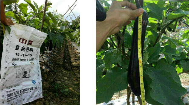 江门新会种植户刘长龙大哥种植了3亩茄子,全程选用中挪13-7-25硝基复肥。使用后,茄子挂果率比往年明显提高,而且茄株个头高,叶片厚实浓绿,结出的茄子个头均匀、果型正、色泽靓丽、卖相好。